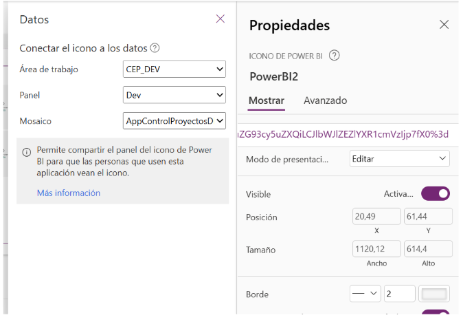 Label with the title “Dashboard” in its Text property Power BI icon control: