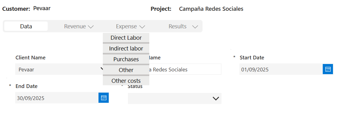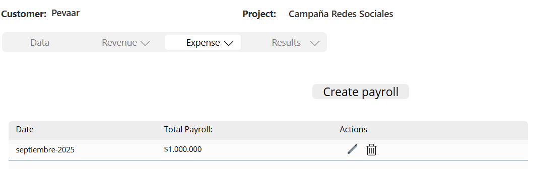 Each option you press redirects you to a screen where you see exactly the project-specific data you need. For example, clicking Direct Labor (Payroll) takes you straight to the payroll table, already filtered for that project.