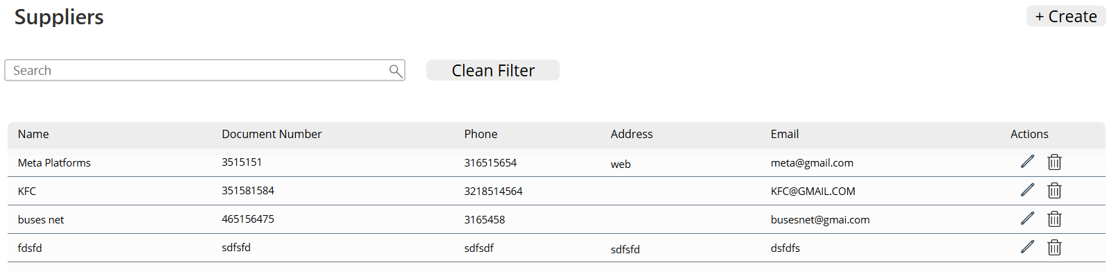 A clean, searchable gallery where all suppliers are displayed. You can filter by name, contact info, or other fields—so finding the right supplier is just a few keystrokes away.