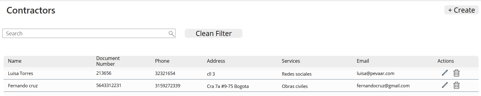 A searchable gallery where you can see all registered contractors, filter them, and manage them with ease.