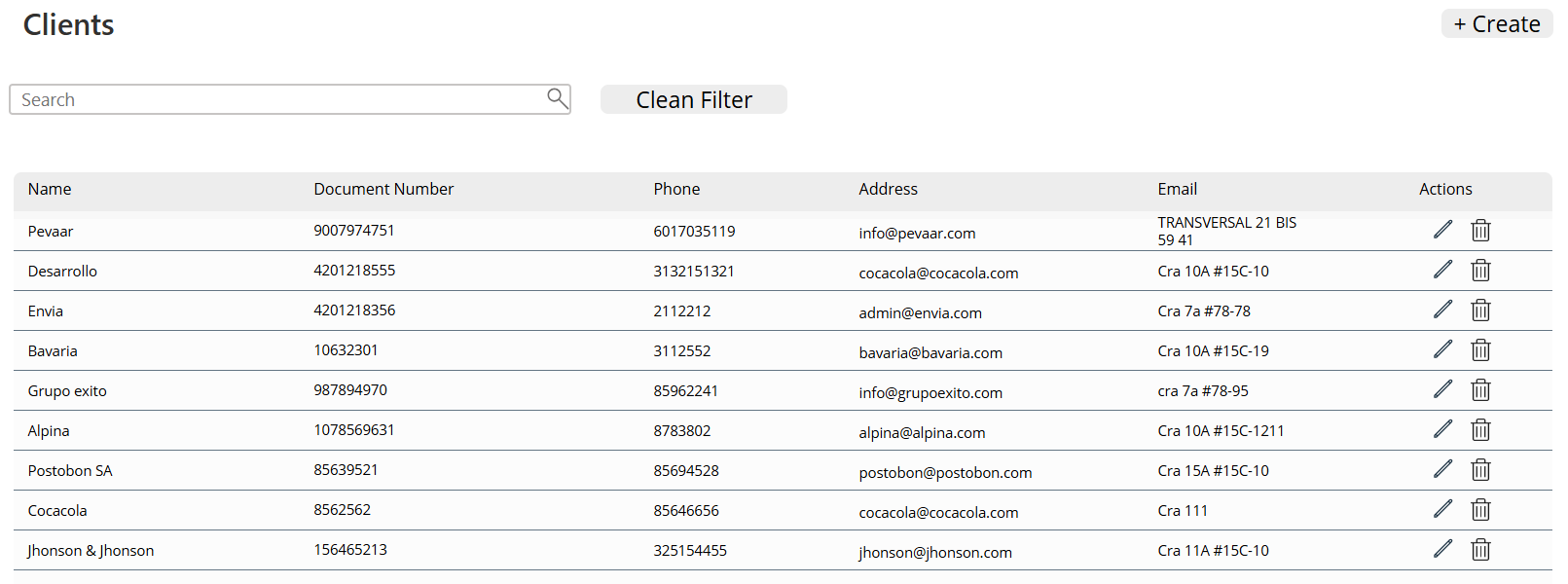This table stores key fields like ClientName, DocumentNumber, Phone, Email, and Address.