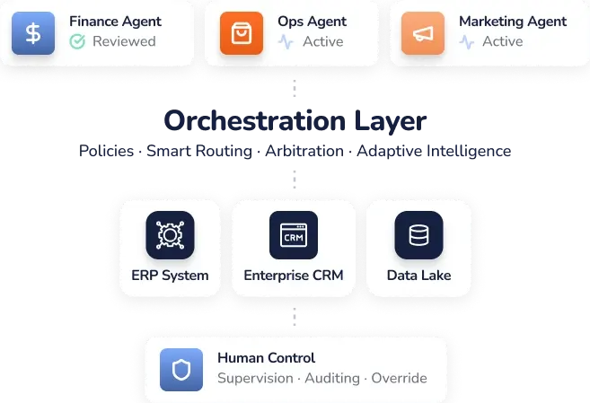 A unified layer that coordinates, governs, and observes every AI-driven decision across your organization.